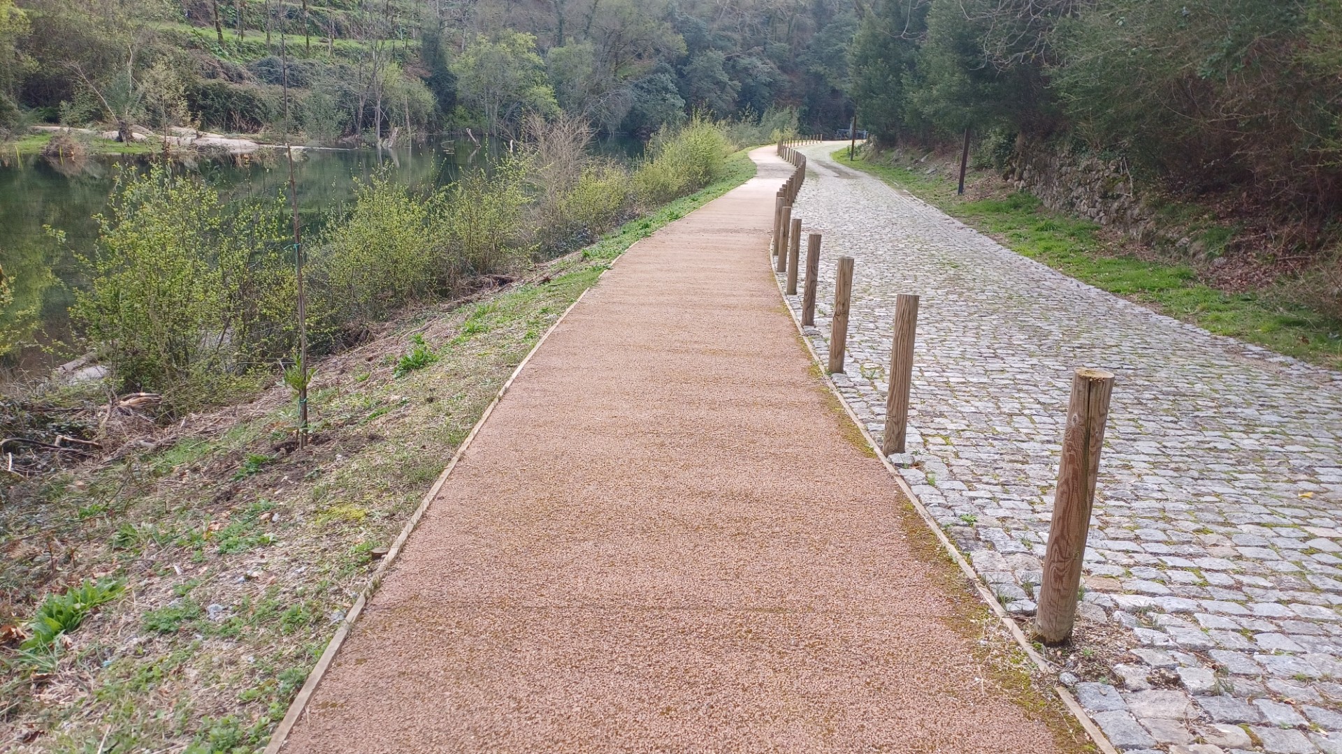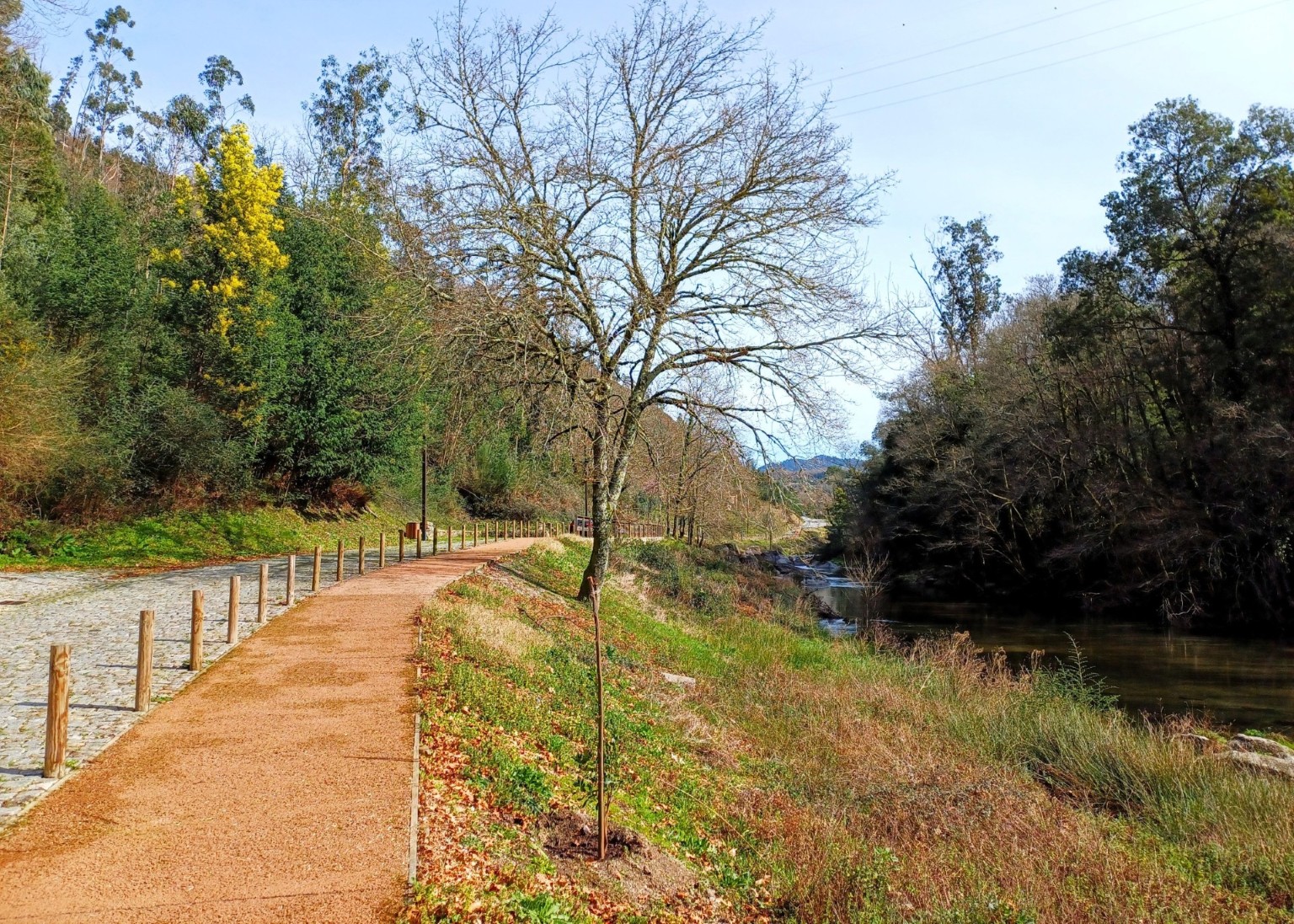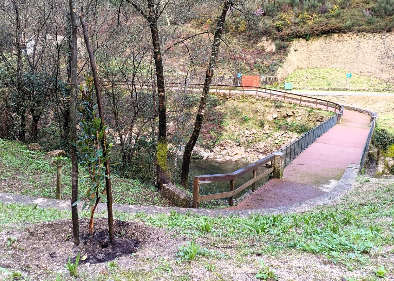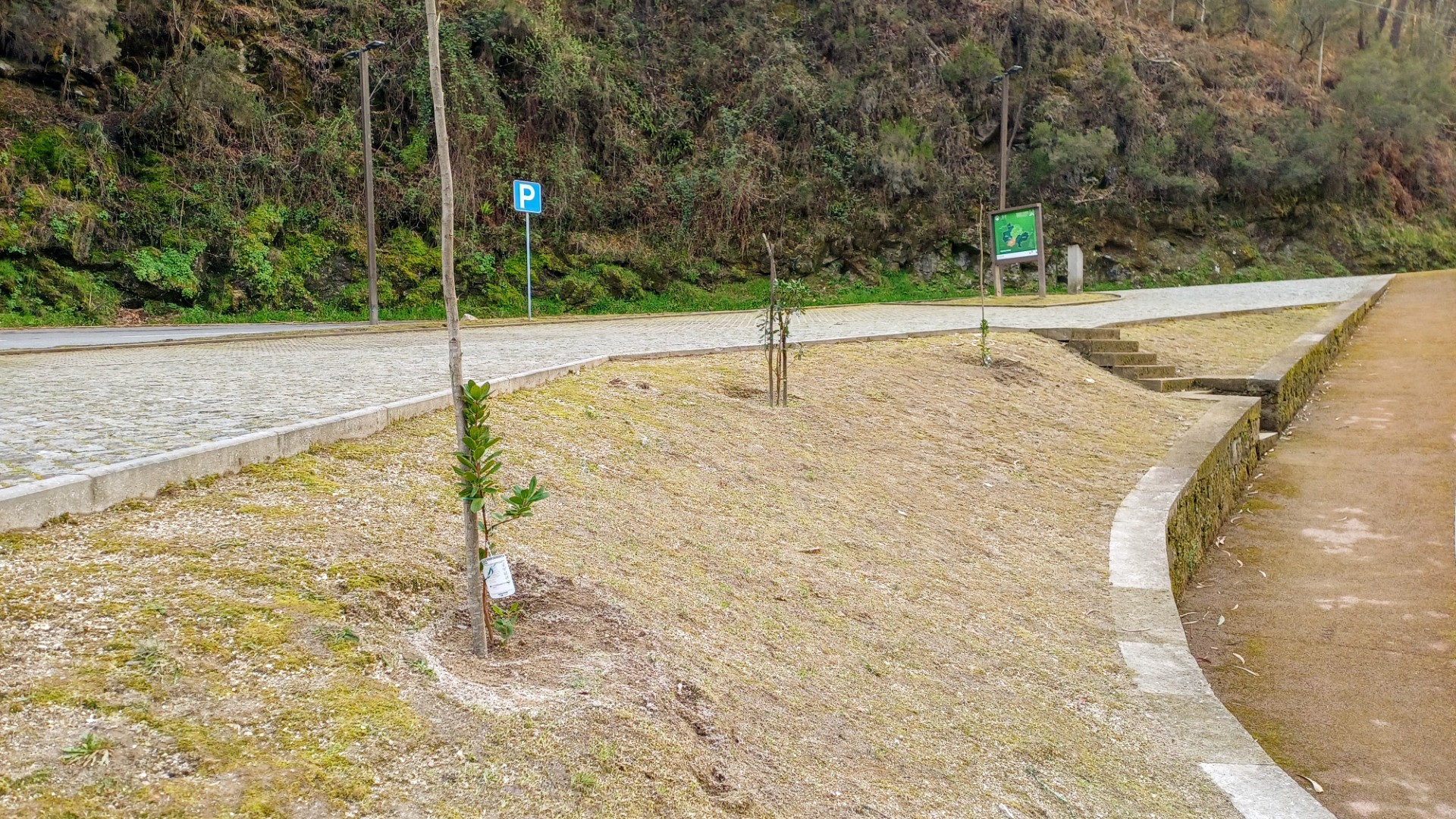 - Proteção do Solo e Fomento da Biodiversidade: As margens foram alvo da introdução de relva e de espécies arbustivas e aromáticas, nomeadamente o rosmaninho e o alecrim. Estas intervenções visam a estabilização e proteção do solo, a atração de insetos polinizadores essenciais ao ecossistema e a criação de um ambiente com características de jardim sensorial ao longo da via.